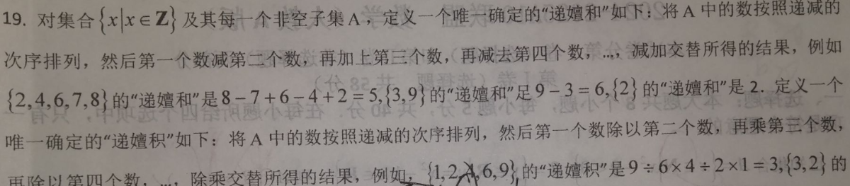 这一题让求"递嬗和"和"递嬗积"。只节选"递嬗和"的部分,"递嬗积"部分我改天写,那个太难想了。原题中具体的集合换成未知的
