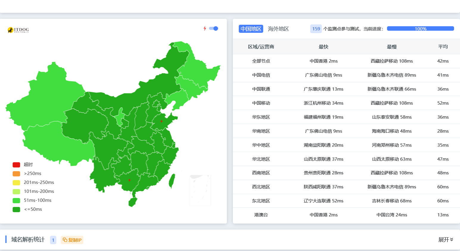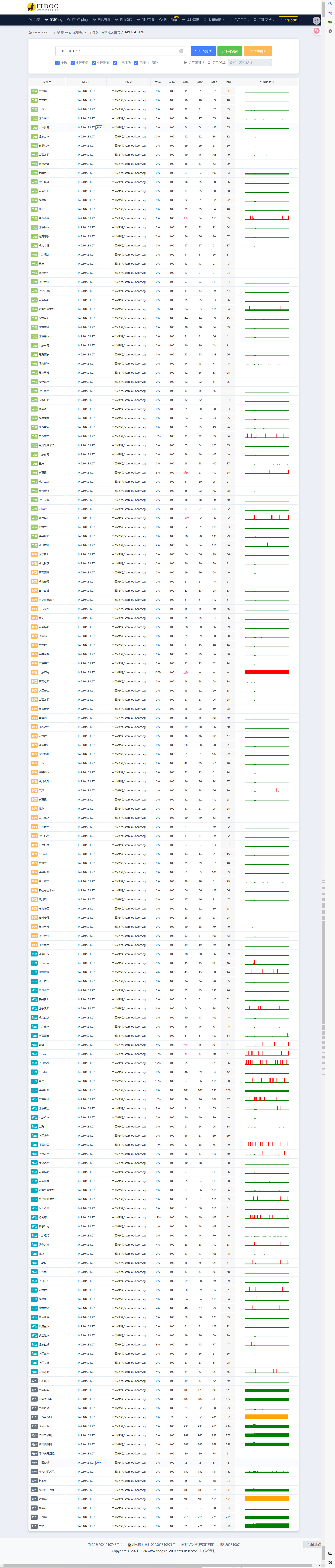 首先看一下Itdog的全国延迟