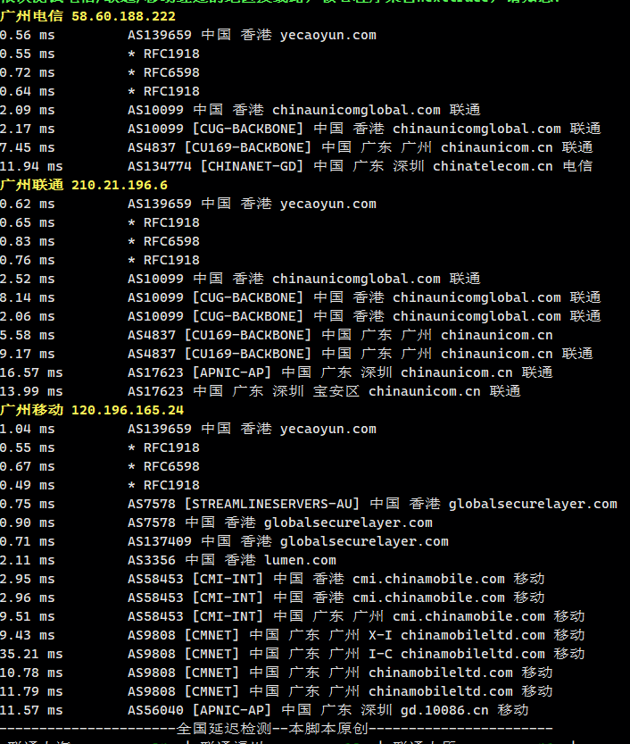 三网去程均采用 自家骨干网直连 + 香港 NTT 的组合,没有绕路,延迟很低