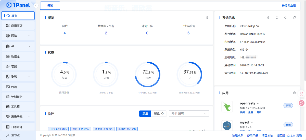 然后使用的话,可以装1panel halo openlist lobechat frp 这些轻量的服务,对于大多数人来说绝对够用了