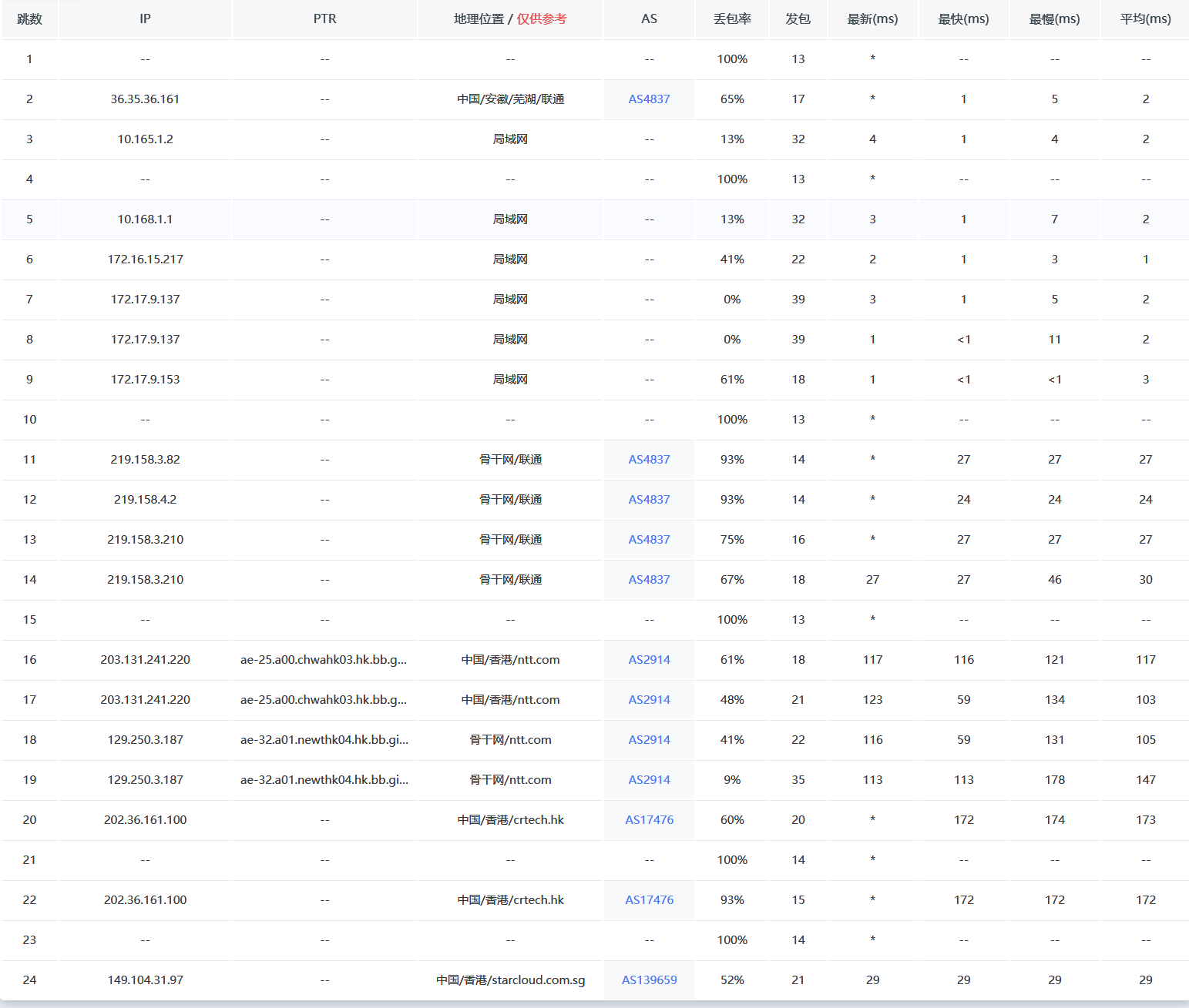 联通的话是走的自家CUG,国内骨干网。