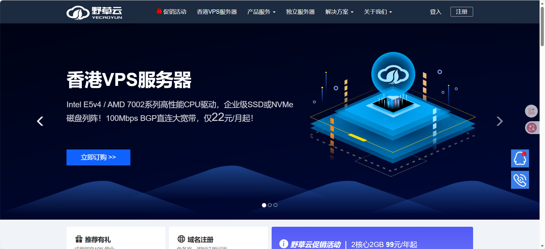 到了今年,正好这个也到期了,感觉那台机器性能不够用。网上找了半天,抱着试试的心态还是买了这台野草云的香港优质BGP的VPS