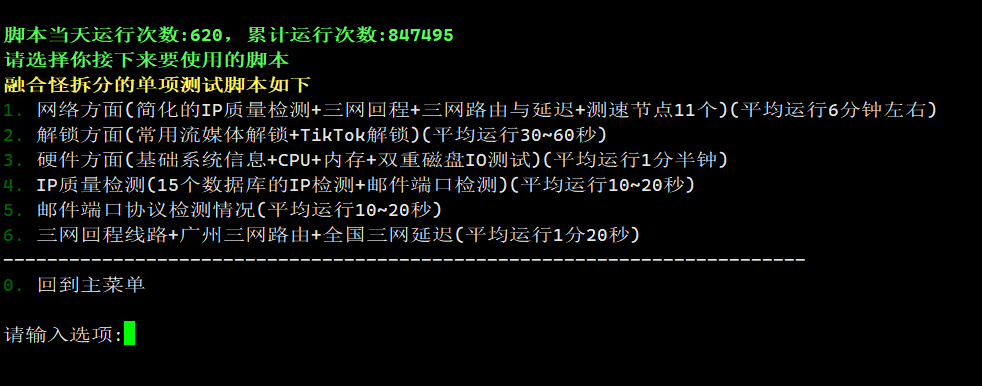 这篇文章发一下我目前测评VPS的一些常用脚本,我个人认为每个类型的有一样就够用了,比如说测试硬件的话,你就没有必要整特别多个,一个就够用了。每个脚本我会发github仓库地址和一键脚本