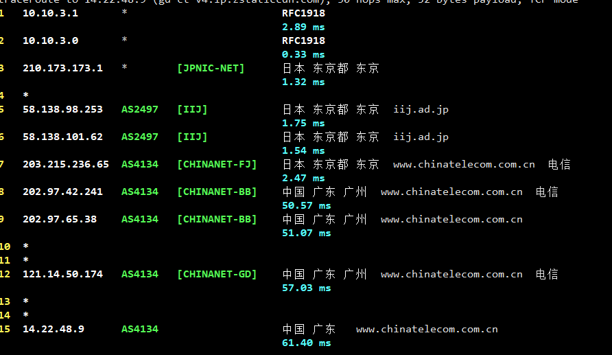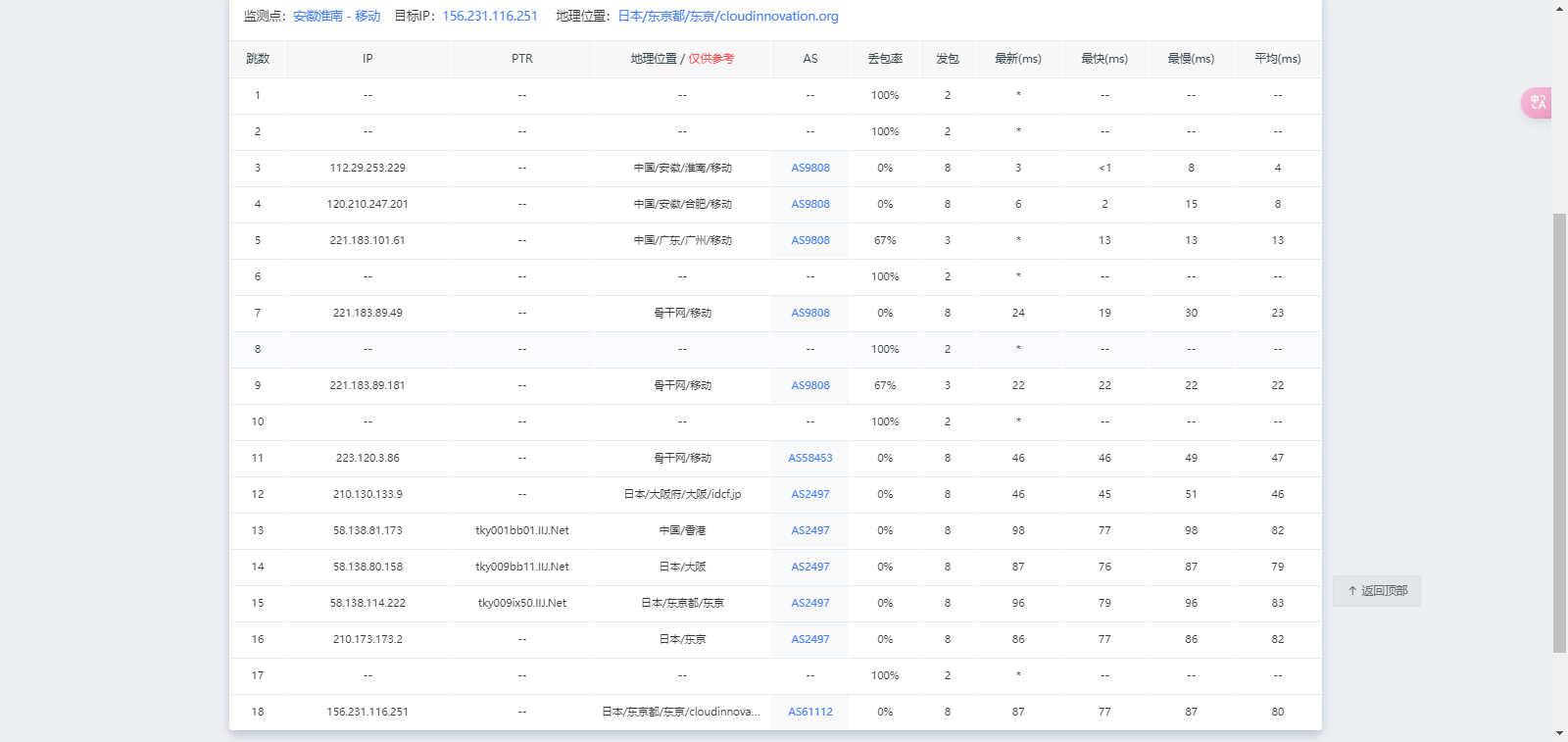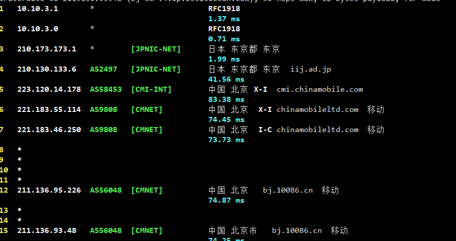 【3.13新补】 移动北方到香港CMI后,绕大阪,而且安徽淮南这种地方都绕,还有北边一点我这安徽宿州。北京内蒙山东等北部地区全绕大阪