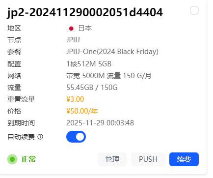 测试下来,整体性能稳定,特别是在延迟、带宽和路由方面表现出色,流媒体解锁能力强。我拿他当frp 完全够使,非常好。关键是便宜续费50 溢价也不严重。我已经frp搭建了博客,论坛,网盘,都没有问题。