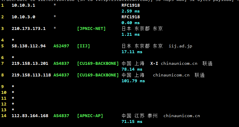 与电信类似,国内走联通4837骨干网,出口处切换IIJ