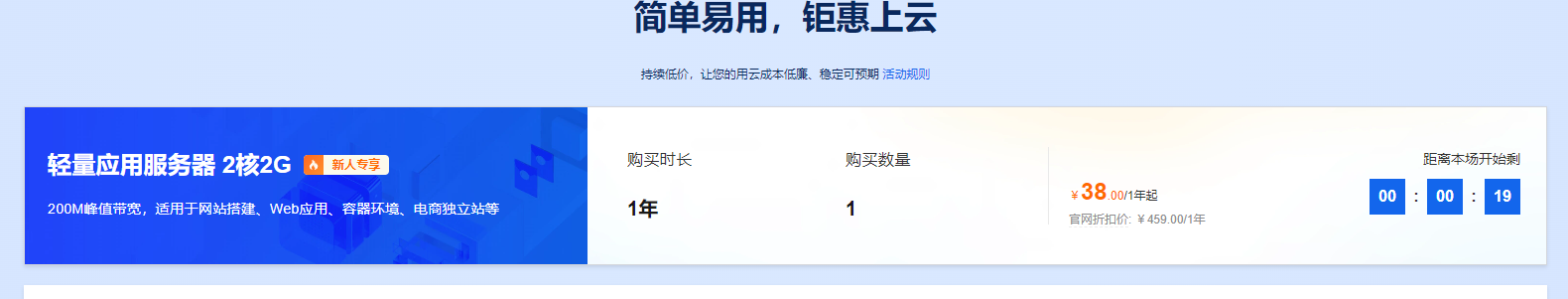 大家好啊,好久没测评VPS了,最近阿里云推出了新用户活动,只要38一年,还是2G2核,200M不限流量,国内机,what??????