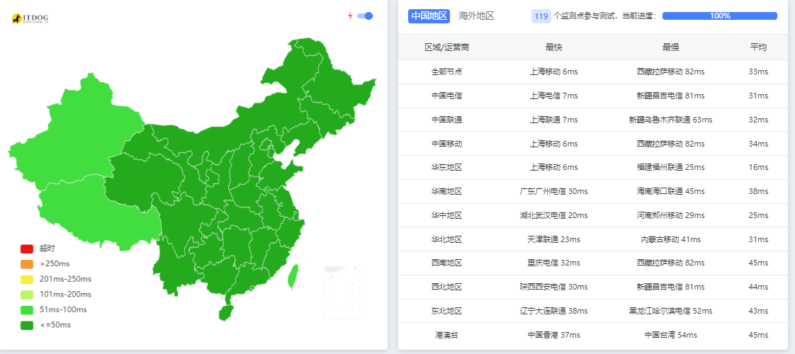 BGP线路,三网延迟差不到哪去,全国一片深绿很优秀