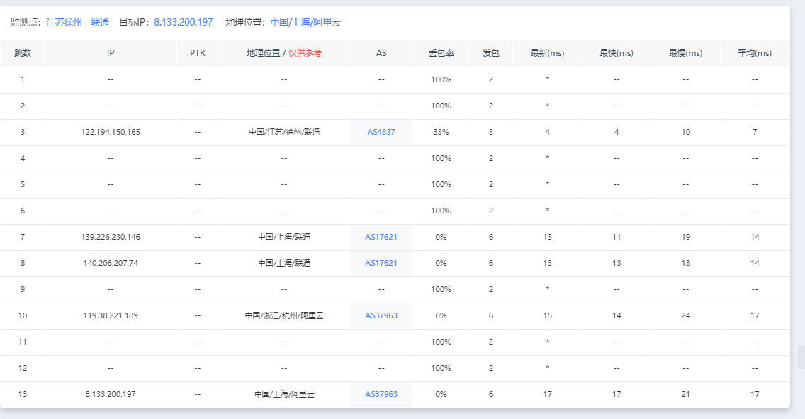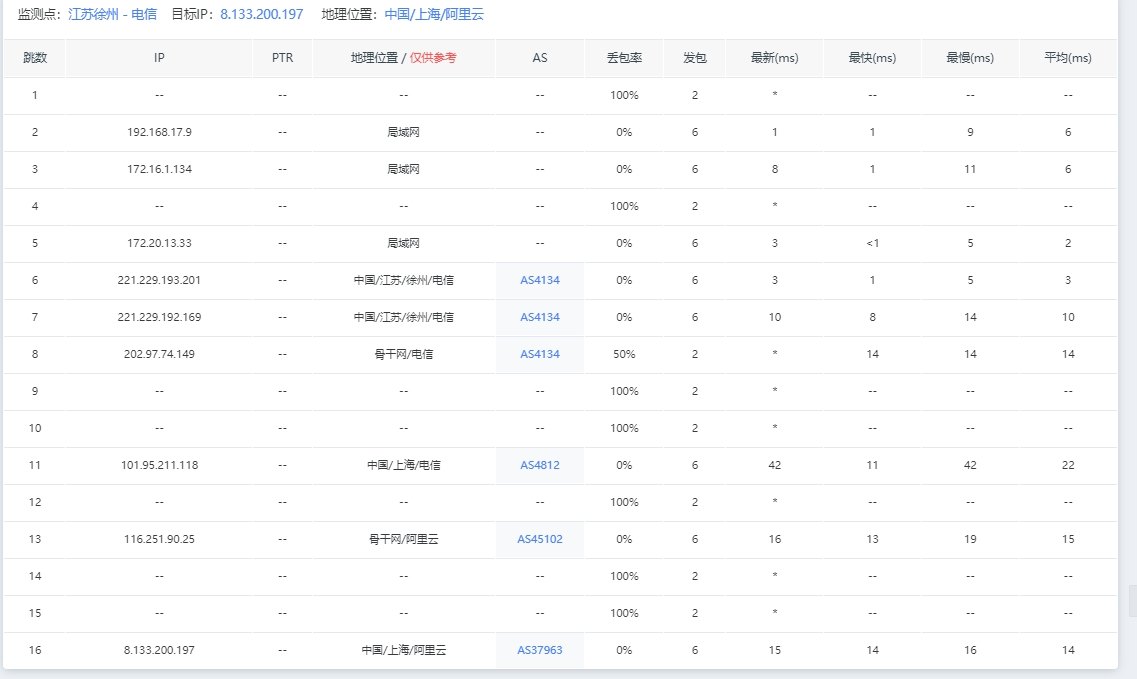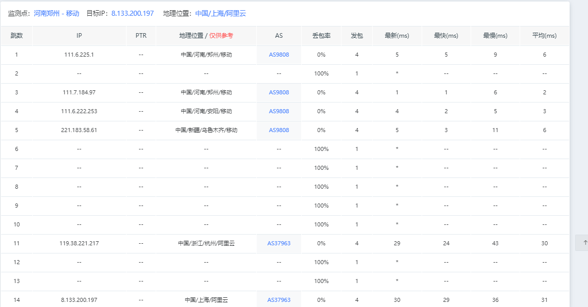 这部分应该意义不大。值得注意的是并非所有地区直连。新疆绕乌鲁木齐这不用多说。电信联通极小部分地区绕杭州阿里云,移动有更大一部分地区绕杭州阿里云。